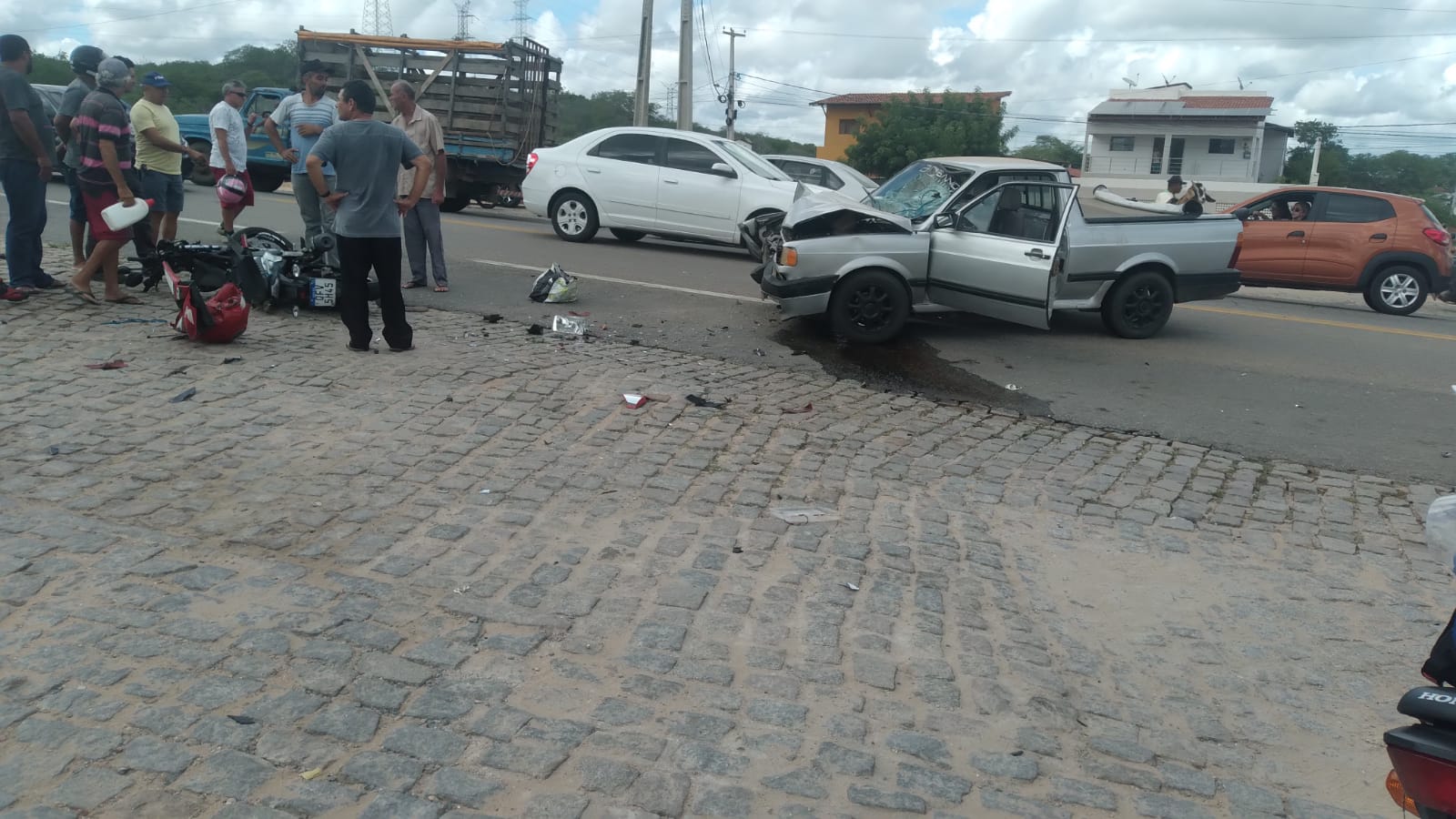O acidente envolveu um veículo tipo Saveiro e uma motocicleta, na BR-226, próximo ao posto de combustíveis.