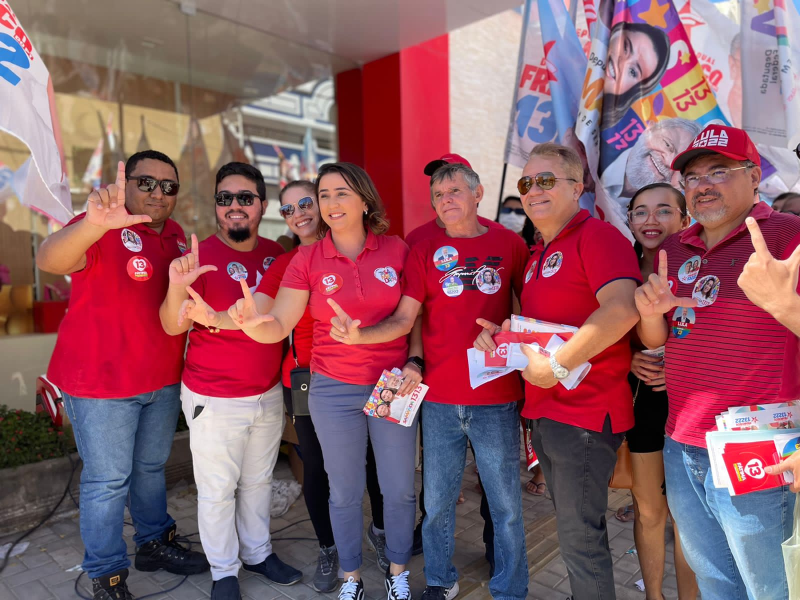 Partidários do Partido dos Trabalhadores realizaram ação política no Calçadão, no Centro de Santa Cruz, com bandeiraço de apoio a Samanda, Fátima e Lula, além de outros candidatos apoiados pelo partido.