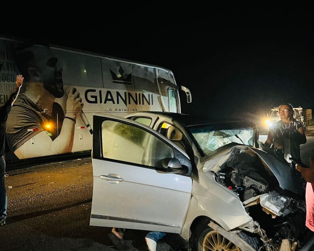 O ônibus do cantor Giannini Alencar se envolveu em um acidente na madrugada desta segunda-feira (24) na BR-226, entre Tangará e Serra Caiada.
