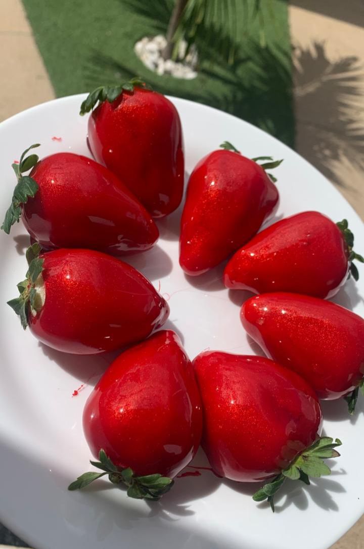 A receita, inspirada na tradicional maçã do amor, combina morango fresco, brigadeiro e uma calda vermelha de açúcar que endurece e forma uma casquinha crocante.