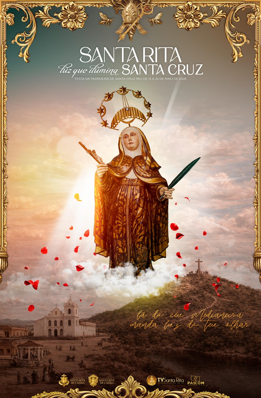 A Paróquia e Santuário de Santa Rita de Cássia, em Santa Cruz (RN), divulgou oficialmente a arte da Festa da Padroeira 2026, um dos momentos mais aguardados pelos fiéis e pela comunidade local. A apresentação da identidade visual marca o início das preparações para o maior evento religioso do município, que anualmente reúne milhares de devotos.