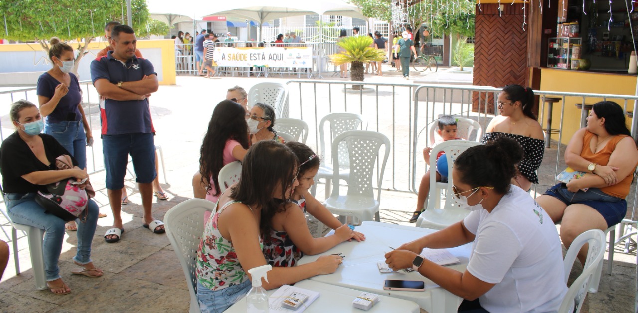 A Praça Coronel Ezequiel Mergelino, a Praça do Coreto, recebeu grande público para garantir imunização contra a Covid-19 e também fazer o teste para diagnóstico da doença.