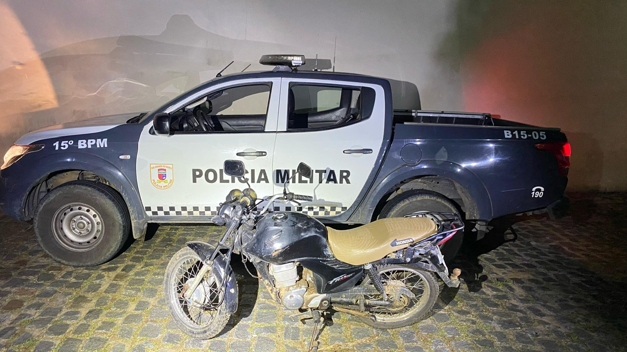 A onda de assaltos começou na noite de sexta-feira (01), na comunidade Furnas, zona rural de Santa Cruz. A motocicleta, uma cinquentinha, foi recuperada pela Polícia Militar.